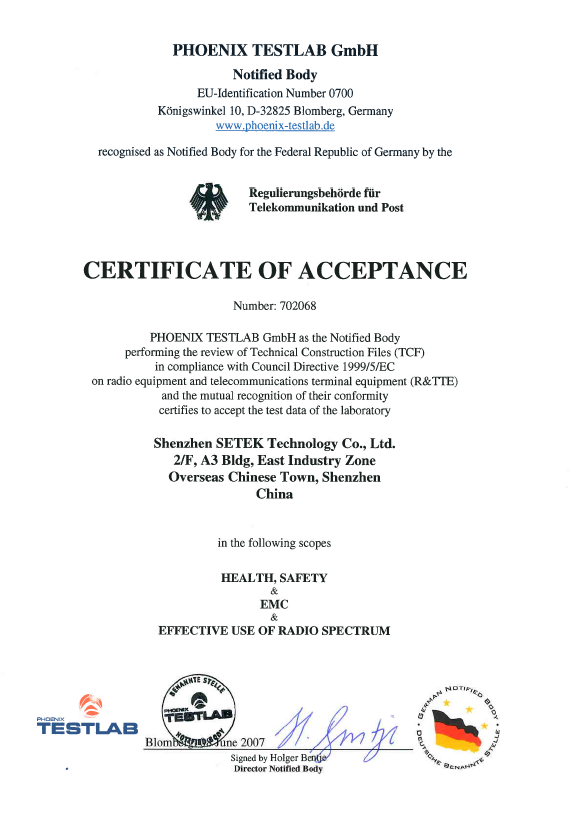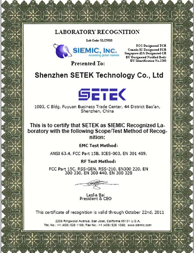 深圳市中檢通科技有限公司(Shenzhen SETEK Technology Co., Ltd.) 是一家專業從事電子電氣產品安全與電磁兼容檢測、測試、認證咨詢、技術咨詢與服務的獨立第三方機構。公司定位于為公共檢驗檢測服務、出具檢驗檢測報告、提供檢驗檢測需求咨詢等高新技術服務業。涉及的檢測領域有電磁兼容檢測、安規檢測、環保檢測、能效與可靠性檢測等5個大類的綜合性能檢測,同時提供專業的IOS客戶驗廠等國際管理體系認證咨詢、企業管理咨詢與培訓服務。能提供不同領域的檢測服務100多項檢測服務。涵蓋的產品包括:消費類電子、無線通訊終端產品、車載電子設備、音視頻/廣播電器、家用電器、照明設備、新能源電池、LED節能照明及玩具等產品領域。